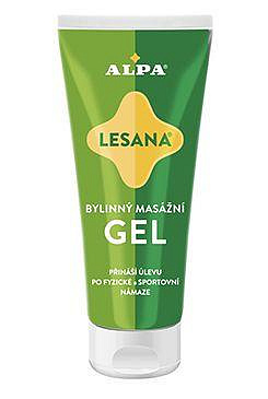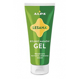 Alpa bylinný masážní gel Lesana má osvěžující a chladivé účinky díky obsahu mentolu. Příznivě působí na regeneraci svalů, zejména po fyzické námaze. Gel lze použít i pro masáž kloubů, svalů a páteře. Je také vhodný při bolestech hlavy a celkové únavě k potření spánků.