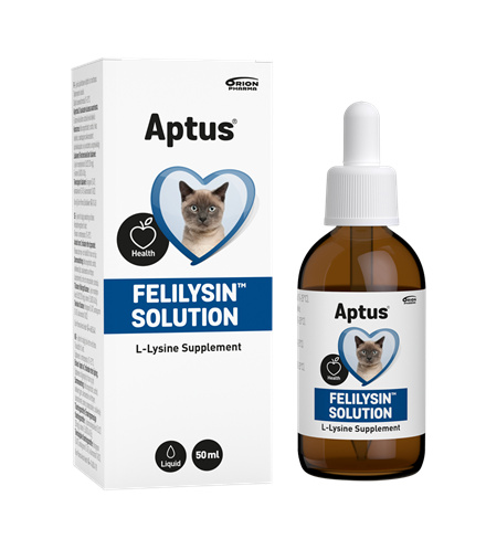 Aptus Felilysin je roztok s obsahem L-lysinu pro podporu imunitního systému koček. Doporučeno jako prevence a léčba kočičího herpespiru-1 (FHV-1). Každý ml obsahuje 263 mg L-lysinu.