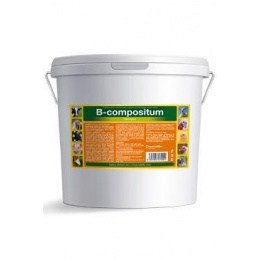 Vitamin B1, Vitamin B2, Vitamin B6, Vitamin B12, Niacinamid, Pantotenan vápenatý, Biotin, Inositol. Krmný návod: Doplňkové krmivo B-compositum se používá při výskytu poruch vyplývajících z nedostatku vitaminů skupiny B, poruchy kůže, opeření a srsti, nervové soustavy, při anémii, perosis, při zátěži vznikající v období intenzivního růstu, vysoké užitkovosti i jiném stresu. Velmi vhodné je jeho používání u zvířat v reprodukci ( zlepšení reprodukčních schopností zvířat, snížení embryonální úmrtnosti, dále pro dobrý vývoj plodu a zlepšení následné životaschopnosti mláďat ), u drůbeže ve snášce, u mláďat, v rekonvalescenci, po léčbě antibiotiky, sulfonamidy a antikokcidiky.