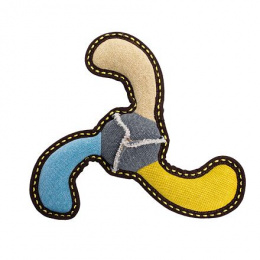 Bumerang 27 cm, robustní aport pro psy, tkaná látka, béžová/modrá/žlutá, HipHop Dog