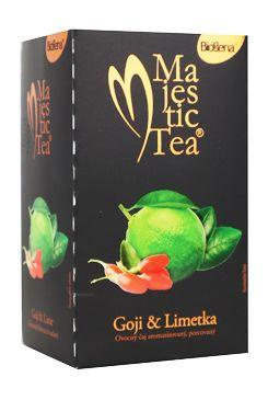 Majestic Tea Goji&Limetka je čaj tmavé barvy s jemnou medovou vůní citrusů. Čaj obsahuje kombinaci limetek a goji známou též pod názvem kustovnice čínská.