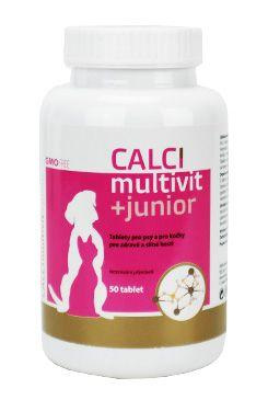 Calci Multivit + junior je doporučován pro zvířata ve vývoji, kdy je zvýšená potřeba vápníku a fosforu. Kombinace vápníku, fosforu a vitamínů A, D3 a E ve fyziologickém poměru pomáhá výstavbě kostí a zubů v prenatálním období a v době růstu. Přípravek má preventivní účinek proti osteomalácii. Přípravek podporuje funkci pohybového a nervového aparátu.