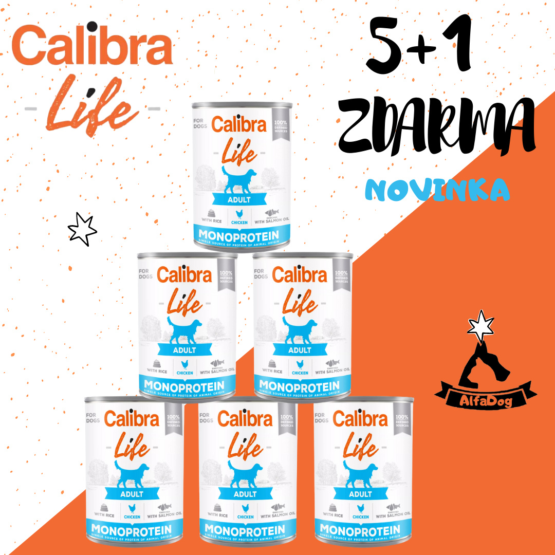 Calibra Dog Life Adult Chicken with Rice – receptura konzervy s kuřetem, kuřecími srdíčky a rýží je kompletním krmivem, která je určená pro dospělé psy.