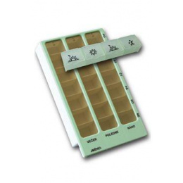 Dávkovač léků týdenní typ 02 sv.zelený+typ 04zd