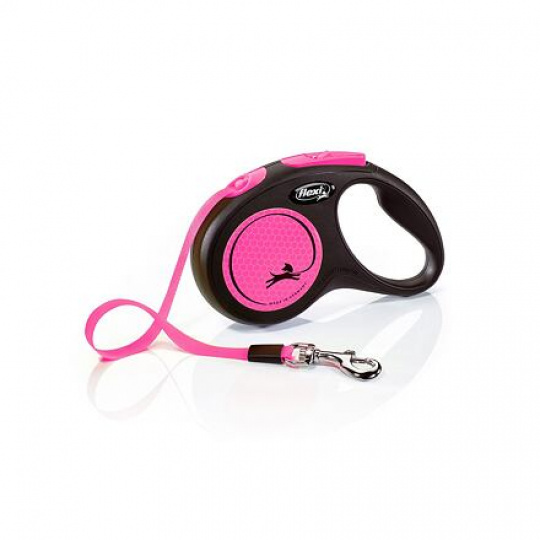 Vodítko FLEXI Neon New S pásek 5m/15kg černá/růžová