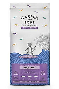 Harper and Bone Cat Adult divy oceánu složené pouze z nejkvalitnějších surovin s vysokým podílem masa, přídavkem superpotravin a čerstvé zeleniny, zaručující prospěšné živiny a přirozenou chuť pro dokonale vyváženou výživu.