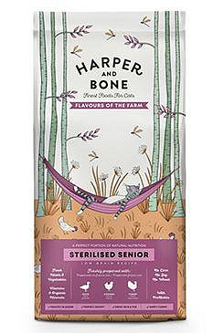 Harper and Bone Cat Senior Sterilised příchutě farmy složené pouze z nejkvalitnějších surovin s vysokým podílem masa, přídavkem superpotravin a čerstvé zeleniny, zaručující prospěšné živiny a přirozenou chuť pro dokonale vyváženou výživu.