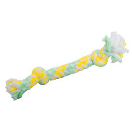 Hebká pletená činka, 2 uzly, 20 cm, pistáciová, žlutá, bílá, HipHop Dog PLUSH