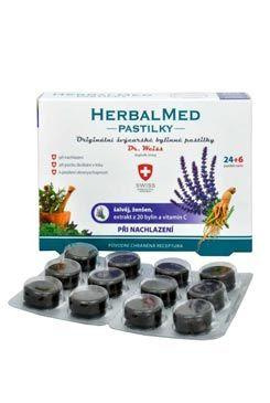 HERBALMED pastilky Dr. Weiss jsou doplněk stravy s obsahem šalvějového extraktu, ženšenového extraktu, eukalyptu a vitaminu C. Pastilky je vhodné zvolna rozpouštět v ústech. Uvolněné účinné složky pokrývají povrch sliznice, kde současně několika mechanismy účinku působí příznivě a blahodárně. Při opakovaném užití díky obsahu extraktu ze šalvěji a vitaminu C se také posiluje obranyschopnost sliznice a následně celého organismu. Pastilky mají příjemnou tradiční chuť, což přispívá k pohodlné, příjemné a účinné aplikaci.