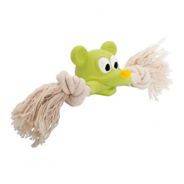 Hlava myšky MINI s bavlněnou činkou, se zvukem, 5x18 cm, zelená/přírodní, HipHop Dog