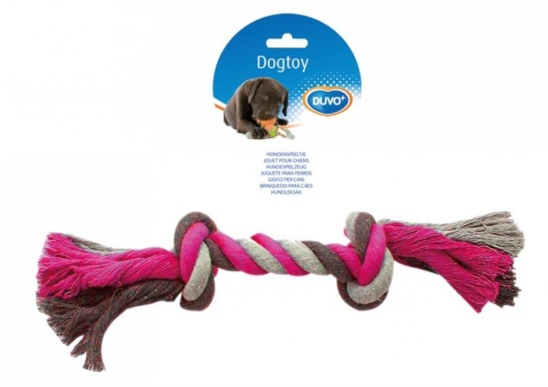 Hračka DUVO+ Lano s 2 uzlami na ťahanie ružovo-šedo-sivé Large 35 cm