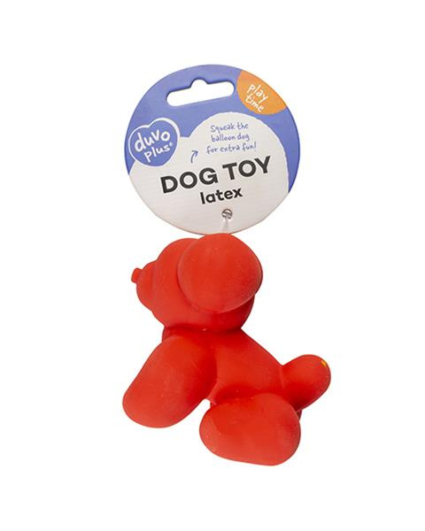 Hračka DUVO+ latexový balón mopslík, pískajúci, červený 9,5x6x8,5 cm