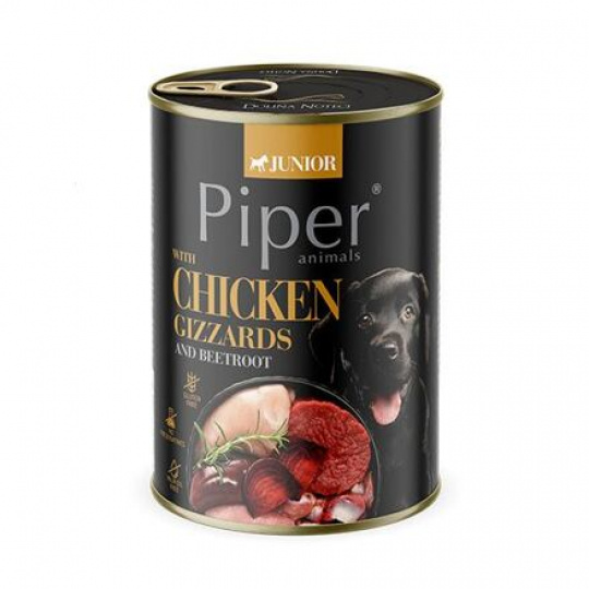 NEW PIPER JUNIOR s kuřecími žaludky a červenou řepou, konzerva pro štěňata, 400 g