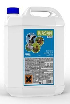 IVASAN Farm je kapalný vodou ředitelný přípravek určený pro profesionální dezinfekci a hygienickou sanitaci povrchů, prostor i technologických zařízení v chovech hospodářských zvířat a dezinfekci dopravních prostředků sloužících k převozu zvířat a skladišť krmiv.