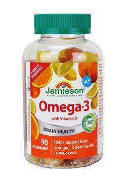 JAMIESON Omega-3 Gummies je doplněk stravy ve formě želatinových pastilek. Omega-3 mastné kyseliny, EPA a DHA pocházejí z oleje ryb žijících v čistých vodách studených moří.