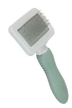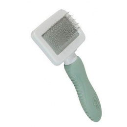 Mykaný kartáč pro králíka a morče: Rozčesávací kartáč, ideální pro každodenní použití. Díky svým pružným zakřiveným štětinám umožňuje kartáčování podsady a eliminaci uzlů bez poškození kůže zvířete. Tento kartáč při pravidelném používání výrazně snižuje vypadávání chlupů domácích mazlíčků.