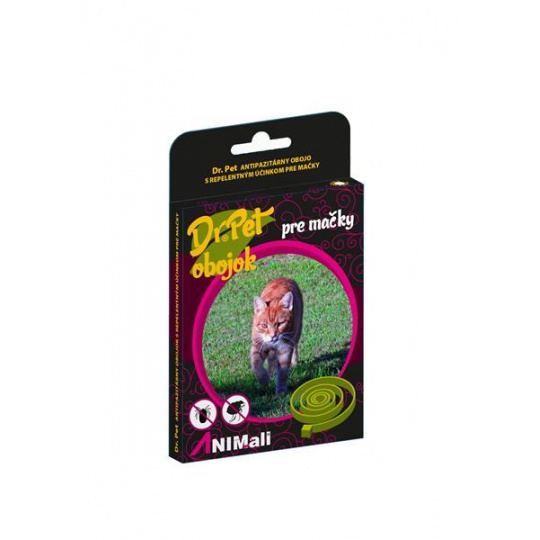 Obojok Dr.Pet pre mačky 43 cm antiparazitárny ČERVENÝ s repelentným účinkom (tick and flea repellent collar for cats)