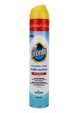 Pronto Multi Surface dokonale odstraňuje prach, šmouhy a otisky. Obsahuje antistatické složky, které zabraňují opětovnému usazování prachu. Jemně čistí a odstraňuje prach z kovu, dřeva, skla a elektroniky (kromě plazmových/LCD obrazovek). Není vhodný pro použití na dřevo bez povrchové úpravy. Pronto poskytuje vašemu nábytku dokonalou péči a ochranu.