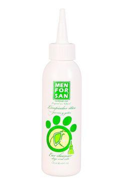 Menforsan přípravek pro vnější čištění uší je nezbytností pro každého svědomitého majitele pejska či kočky. Oba druhy zvířat mají přirozeně skvělý sluch, a proto je třeba pečovat o čistotu jejich uší. Při procházkách v přírodě se jim do nich mohou dostat různé nečistoty či prach, které mohou při zanedbané péči vyústit v nepříjemné infekce. Tento přírodní čistící roztok nám pomůže snadno čistit zevní zvukovod a uši psů a koček. Samotná aplikace je velice jednoduchá, přípravek stačí nanést na vnější stranu ucha čistým hadříkem nebo vatovou tyčinkou. Neobsahuje alkohol a pyšní se stejným pH, jako má kůže zvířete. Nemusíte se tedy obávat nežádoucího podráždění. Obsahuje nejen látky rozpouštějící zrohovatělé části pokožky a ušní maz, ale také dezinfekční složky, zabraňující případným infekcím. Zároveň ušní okolí hydratuje a zvláčňuje. Výrobek je tak určen k pravidelné péči o vnější zvukovod u psa i kočky.
