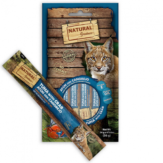 Natural Greatness Creamy HAIR & SKIN, funkční pamlsek - tuňák, krab, 4 x 14 g