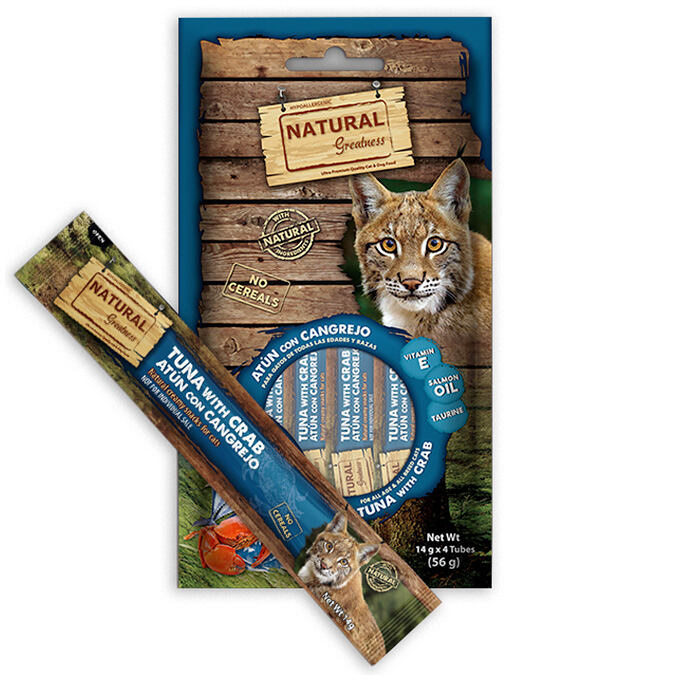 Natural Greatness Creamy HAIR & SKIN, funkční pamlsek - tuňák, krab, 4 x 14 g