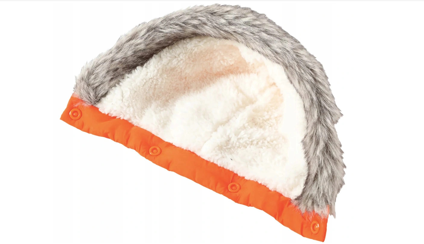 Voděodolný prošívaný trendy obleček s kapucí je velmi pohodlný. Má odepínací ultra měkkou kapuci lemovanou kožešinou s druky a v oblasti krku a hrudníku je nastavitelné pružné zapínání na suchý zip. Obleček má intergrované otvory na obojek a na nohy.