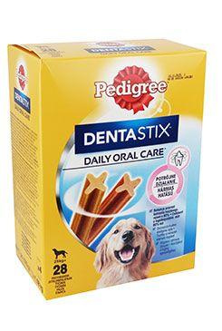 Pedigree Dentastix Daily Oral Care jsou dentální pamlsky v jedinečném tvaru písmene X, u kterých je vědecky dokázáno, že při každodenním užívání pomáhají snižovat tvorbu zubního kamene až o 80 %. Pedigree Dentastix Daily Oral Care mají jemnou abrazivní texturu a aktivní složky, které pomáhají omezit usazování plaku a tvorbu zubního kamene. Jsou chutné, přesto mají nízký obsah tuku, neobsahují přidaný cukr, umělá barviva a ochucovadla. Pedigree – posilujte to dobré ve svém psovi.