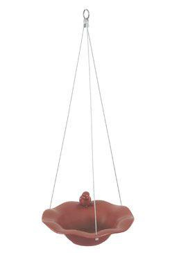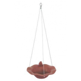 Karamická miska s dekorací ptáčka na okraji může sloužit jako pítko nebo koupel pro ptáky. Keramika je mrazuvzdorná a je opatřena pevnými kovovými lanky pro zavěšení. O misky 26cm.