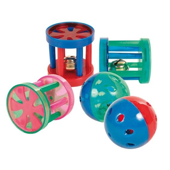 Plastový míček/klec s rolničkou 4,5cm/4cm ( 60ks dóza)