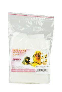 Jednorázová absorbční plena pro psy, zejména štěňata, háravé feny, nemocné psy atp. vhodná na cesty, v domácnosti či pobytu na zahradě, v noci či ve dne. Pleny jsou vyrobeny tak, aby byly pohodlné a nijak nebránili v pohybu. Jemná a měkká povrchová vrstva z netkaného textilu odvádí rychle vlhkost. Mimořádně savý materiál vstřebává rychle tekutinu a vnější folie spolehlivě chrání před prosáknutím. Plena se lehko nasazuje díky upínacím páskům, které jsou upraveny tak, aby se nezachytávaly srst mazlíčka