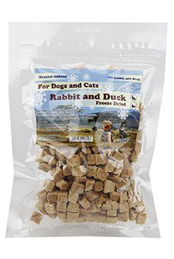 Masová pochoutka pro psy a kočky, králičí a kachní maso kostky sušené mrazem.