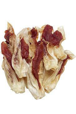 Masová pochoutka pro psy, králičí ucho plněné kachním masem.