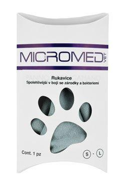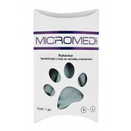 Ošetřující rukavice VET MICROMED jsou určeny především pro ošetření srsti a kůže u psů a koček, ale použít se dají např. i na koně. Vytvořeny jsou z jemného vlákna a integrovaného koloidního stříbra. Použitím této rukavice docílíte nejen očištění Vašeho zvířete, ale také poskytujete antibakteriální ošetření. K dostání ve velikostech S a L.