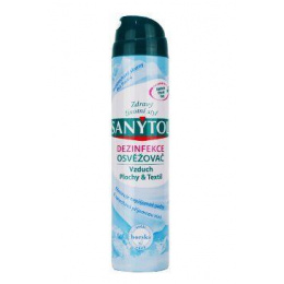 SANYTOL vyčistí vzduch a vydezinfikuje povrchy v jednom jediném kroku. Jeho složení zajišťuje dokonalou hygienu a zanechává příjemně svěží vůni. Zahubí 99,9 % bakterií, plísní a virů, včetně viru chřipky typu A (H1N1). Dezinfikuje a čistí. Absorbuje a ničí pachy tím, že odstraňuje jejich příčinu (mikroby). Působí na vzduch, povrchy a bytové textilie. Nezanechává skvrny, k textiliím je šetrný. Příjemně provoní celou domácnost vůní hor.