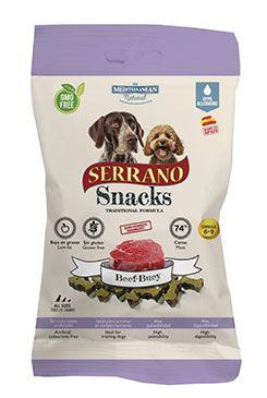Mediterranean Natural Serrano Snacks, pamlsky delikátně rozkrájené na malé kousky ve tvaru kosti, zaručují bezpečnost vašeho čtyřnohého přítele, přičemž zachovávají všechny živiny, respektují přirozenou stravu a obsahují 70% čerstvého masa.