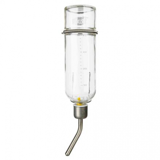Skleněná napáječka s kovovým pítkem 125 ml, např. velký křeček, činčila