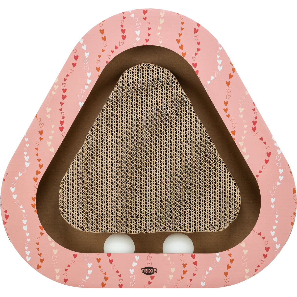 Škrabací karton VALENTINE triangl, s míčky a catnipem, 36 x 5 x 36/36 cm, losos - LIMITOVANÁ NABÍDKA