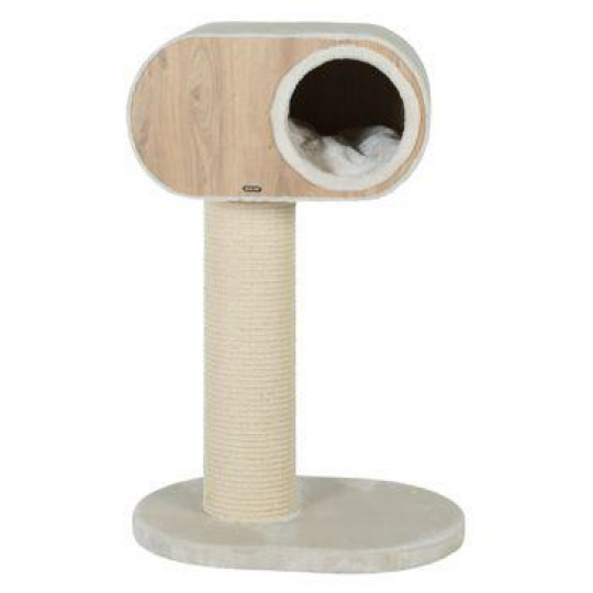 Nádherný kočičí strom/škrabadlo s čistými liniemi v art deco stylu dokonale splyne s interiérem vašeho domova. Díky kvalitním materiálům jsou všechny části robustní a pohodlné: melamínová jeskyně, sloupek pokrytý sisalovou rohoží, kožešinovou plošinou a polštář. Struktura tohoto kočičího stromu je vyrobena ze 100% FSC® - certifikovaného dřeva a sloupek je pokryt dlouhotrvající sisalovou rohoží. Jeskynní polštář je praktický a lze ho pro snadnou údržbu vyjmout. Jeskyně má jen 1 otvor, díky kterému se kočky cítí BEZPEČNĚ. Škrabadlo má vysokou stabilitu a je pro kočky velmi pohodlné. Průměr sloupku: 17 cm, celková výška 92 cm.