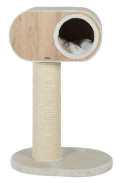Nádherný kočičí strom/škrabadlo s čistými liniemi v art deco stylu dokonale splyne s interiérem vašeho domova. Díky kvalitním materiálům jsou všechny části robustní a pohodlné: melamínová jeskyně, sloupek pokrytý sisalovou rohoží, kožešinovou plošinou a polštář. Struktura tohoto kočičího stromu je vyrobena ze 100% FSC® - certifikovaného dřeva a sloupek je pokryt dlouhotrvající sisalovou rohoží. Jeskynní polštář je praktický a lze ho pro snadnou údržbu vyjmout. Jeskyně má jen 1 otvor, díky kterému se kočky cítí BEZPEČNĚ. Škrabadlo má vysokou stabilitu a je pro kočky velmi pohodlné. Průměr sloupku: 17 cm, celková výška 92 cm.
