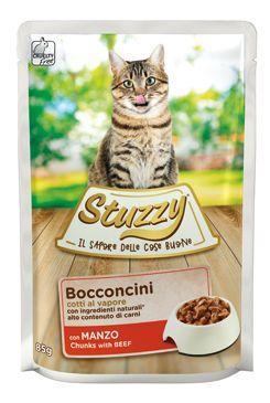 Vlhké krmivo pro kočky s hovězí příchutí je speciálně připravováno v páře. Italské kapsičky Stuzzy zachutnají i té nejmlsnější kočičce. Složení kapsičky je speciálně upraveno tak, aby splňovalo výživové požadavky dospělých koček. Kapsičky označené jako Bocconcini obsahují pouze pomalu vařené přírodní ingredience a jsou bohaté na chuť a živiny (jedinečný zážitek skutečné chuti).
