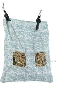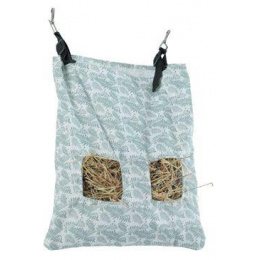 Textilní jesličky na seno pro králíky, se vzorem palmových listů.