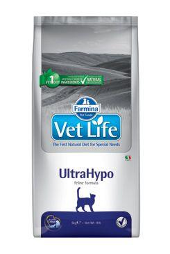 Farmina Vet Life Ultrahypo je kompletní krmivo pro kočky určené pro snížení výskytu potravinových alergií a nesnášenlivostí. Používá se i jako eliminační dieta. Podporuje také funkci kůže v případě kožních poruch a nadměrné ztráty srsti.