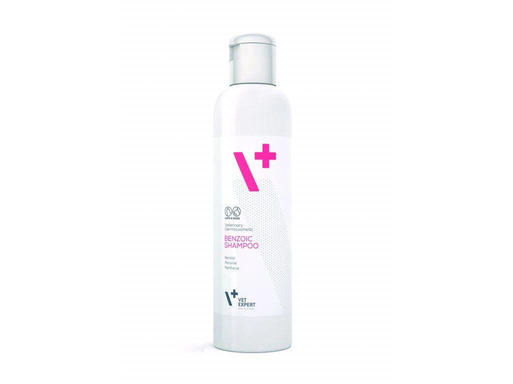 Složení jemných čisticích a hydratačních přípravků obsažených v šamponu Benzoic vám umožní účinně pečovat o citlivou pokožku vašeho psa nebo kočky. Benzoický šampon zpomaluje vysoušení pleti důkladným čištěním mastné a problematické pleti.