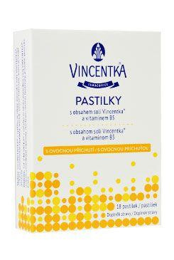 Vincentka pastilky s ovocnou příchutí obsahují minerální soli, které příznivě účinkují na sliznice. Jsou určené pro péči o sliznice ústní dutiny a nosohltanu. Soli z přírodní minerální vody Vincentka zvlhčují a osvěžují, proto jsou pastilky výborným pomocníkem při zvýšené zátěží hlasivek.