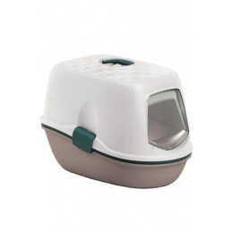 Inovativní a ekonomická krytá toaleta pro kočky. Toaleta se skládá z horního krytu s rukojetí a výklopnými dvířky a ze 2 podnosů a 1 vkládacího síta. Síto umožňuje oddělit nečistoty a opětovně použít čistou podestýlku (výměnou podnosů), čímž se zamezí jakémukoliv vysypávání steliva.