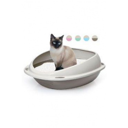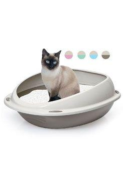 Otevřená toaleta pro kočky s vysokým okrajem.